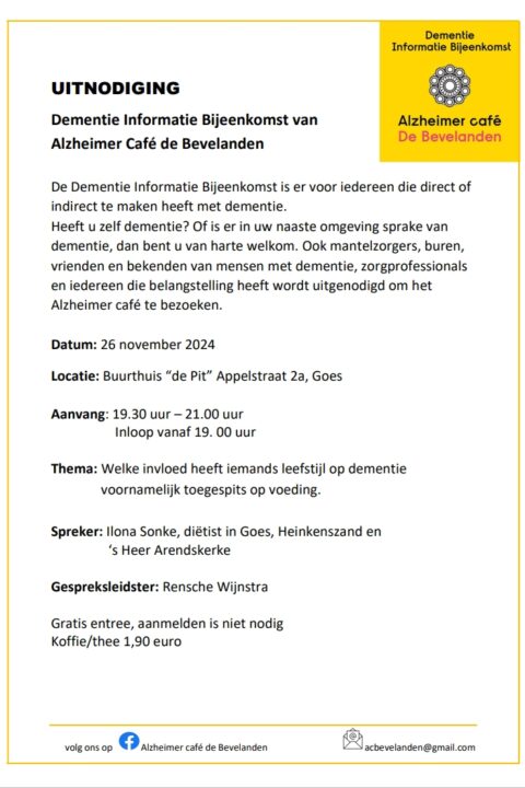 Dementie Informatie Bijeenkomst van Alzheimer Café de Bevelanden