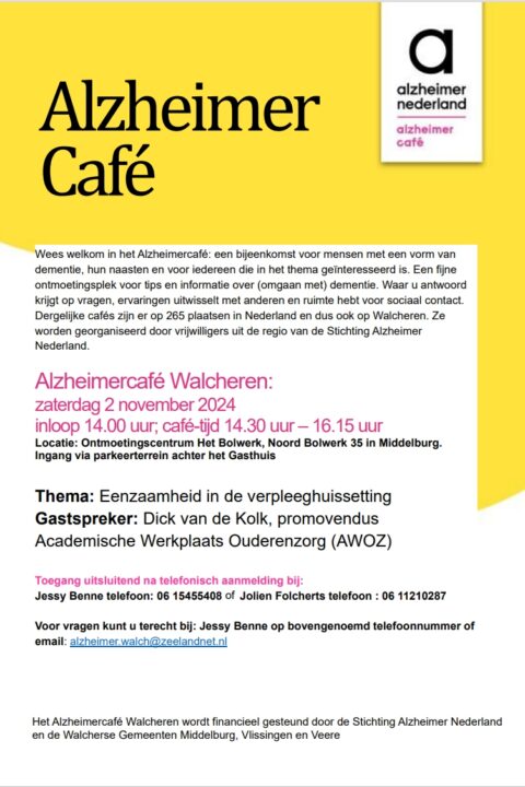 Zaterdagmiddag 2 november organiseren wij voor u in het Alzheimercafé Walcheren een themabijeenkomst
