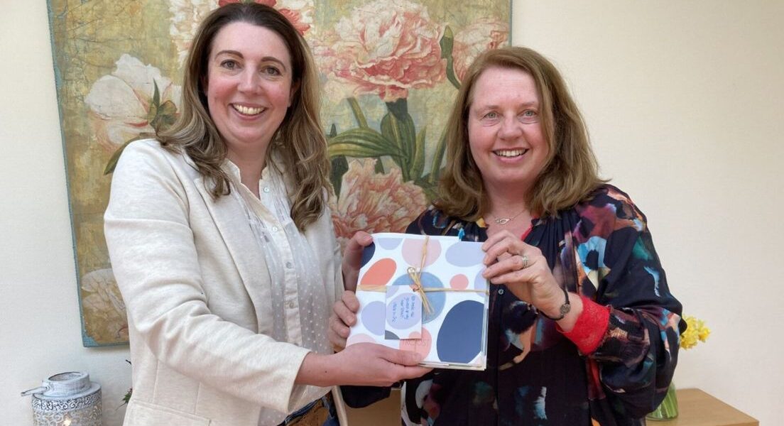 Toch overhandigt ze het boekje vandaag niet op een basisschool, maar in Hospice Het Clarahofje in Goes: “Het boekje is op reis gegaan. We hebben ontdekt dat de boekjes ook ingevuld kunnen worden als herinneringsboek als iemand aan het einde van z’n leven is. Dat is de schakel naar het hospice.”