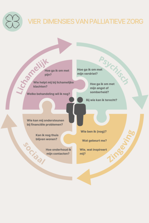 Palliatieve zorg is de zorg en ondersteuning die wordt geboden in de laatste fase van het leven. Deze zorg is er voor jou én je naasten. Het bericht dat genezing niet meer mogelijk is, kan een zware en ingrijpende boodschap zijn. Zoals Jannie Oskam, patiënt en auteur, treffend zei: